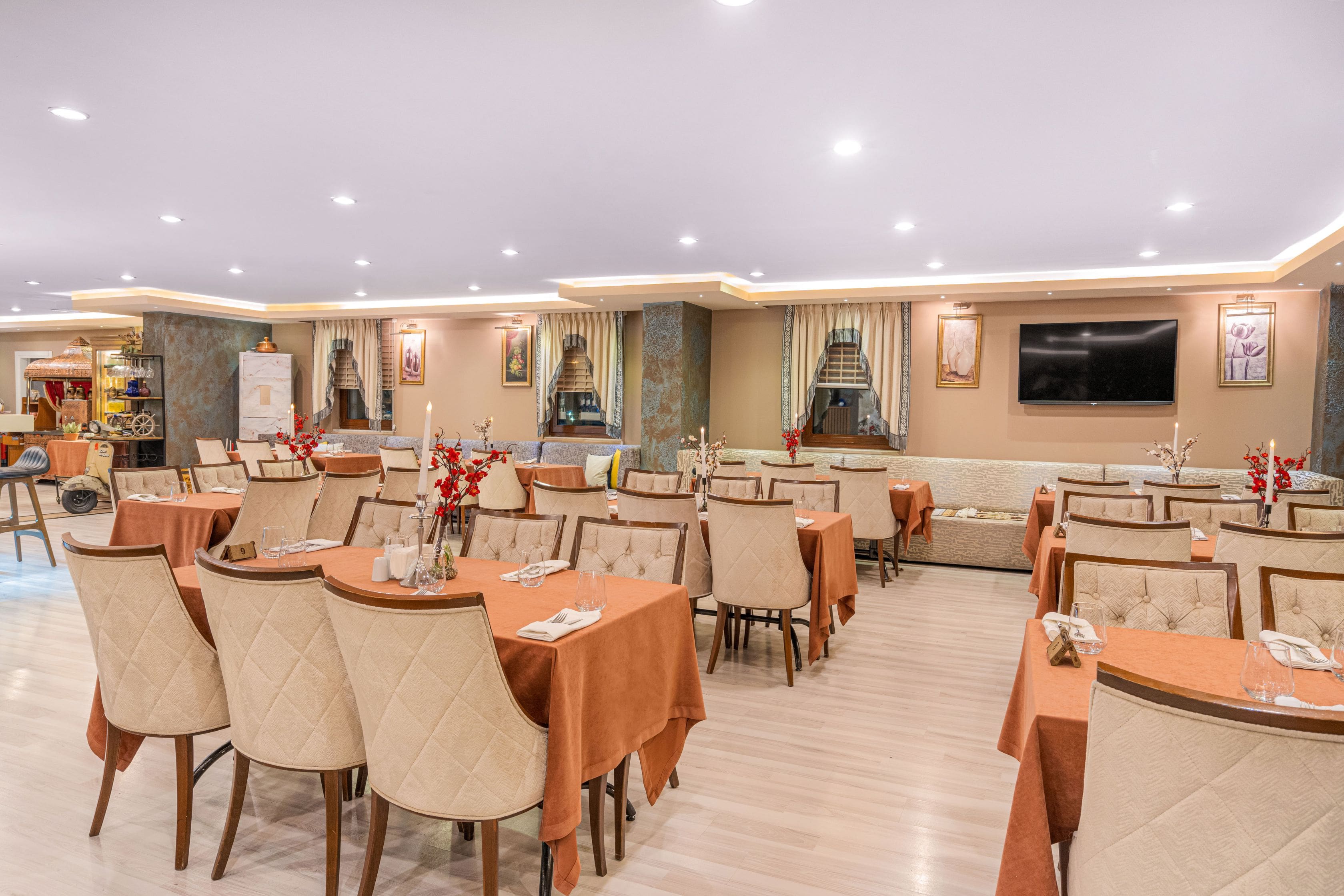 The restaurant, where the most beautiful local flavors of the city are exhibited, welcomes the local people or their guests who come to visit the city in an elegant and distinguished ambiance with the wonderful presentation of the chefs and their unique tastes. In the menu prepared by paying attention to the use of local and sustainable products, the products that are the signature of Kars Cuisine are offered to the guests at the Grand Ani Hotel restaurant.